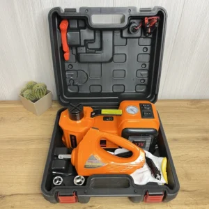 تتضمن العبوة 10 قطع: رافعة كهربائية مع مضخة هوائية ومفتاح ربط كهربائي ومطرقة أمان وصندوق معدات بلاستيكي وكابل توصيل مشبك البطارية وقفازات وكابل طاقة ومحولات مقبس وصمام كهربائي وكتيب تعليمات (طول كابل الطاقة: 3.5 متر)