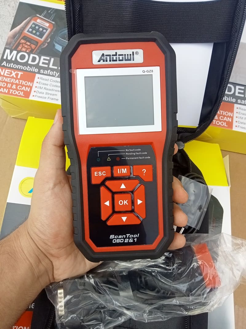 جهاز فحص الأعطال Andowl هو المزيج الأمثل بين قارئ رموز فحص المحرك وجهاز اختبار حمل مولد بطارية السيارة بجهد 6 فولت و12 فولت. يمكنك هذا الماسح الضوئي OBD2 على قراءة بيانات اختبار مستشعر الأكسجين مباشرةً، وبيانات إطار التجميد، وبيانات اختبار شاشة السيارة، وإيقاف مؤشر فحص المحرك (MIL)، ومسح الرموز وإعادة ضبط الشاشة، واسترجاع معلومات السيارة (VIN وCID وCVN). كما يوفر تحليلًا شاملًا لحالة البطاريات ويساعدك على معرفة حالتها مسبقًا قبل نفادها.