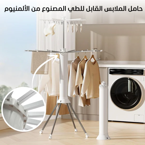 تصميم أنيق وعصري: يضفي التصميم الأنيق والبسيط لمجفف الملابس ذو الأرجل الأربعة لمسة عصرية على غرفة الغسيل، مما يميزه عن الرفوف الأخرى التي تشغل مساحة كبيرة.