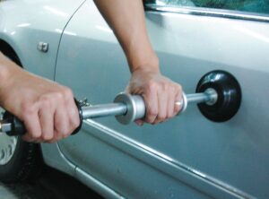 Il est ensuite facile de débosseler par extraction en utilisation le marteau à piqueter